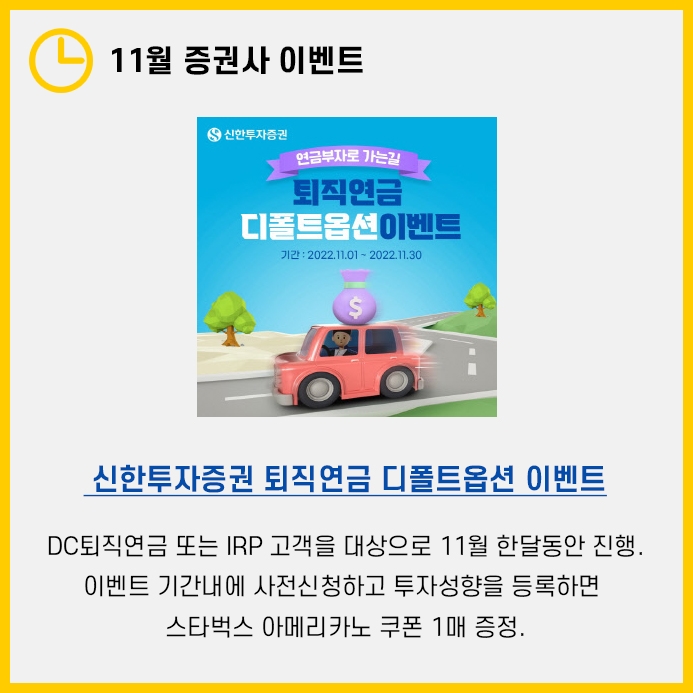 오늘은 퇴직연금 디폴트옵션과 함께 11월 증권사 이벤트까지 살펴보도록 하겠습니다.