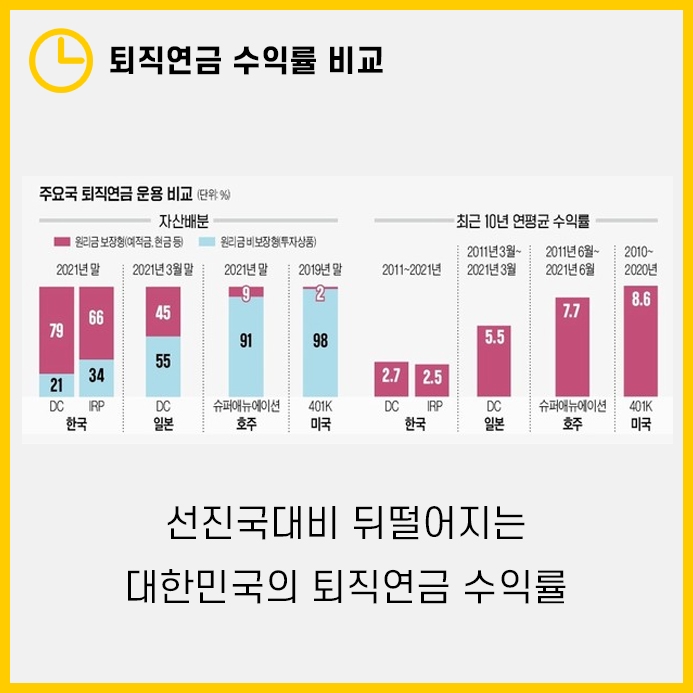 선진국에서는 퇴직연금 수익률이 연평균 6~8%로 노후소득으로서 훌륭한 역할을 해내고 있는데요.