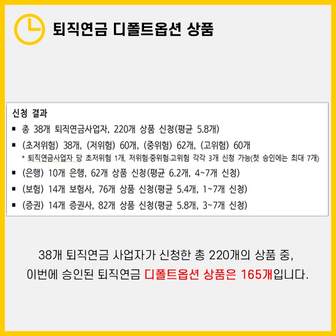 11월 2일 고용노동부에서 디폴트옵션 상품 165개를 승인함에 따라 디폴트옵션 도입이 한층 더 가까워졌습니다.