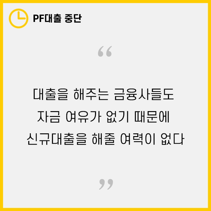 이에따라 부동산 시장에서도 PF대출중단을 하는 경우가 많아, 더욱 투자자들의 불안감은 높아져가고 있습니다.
