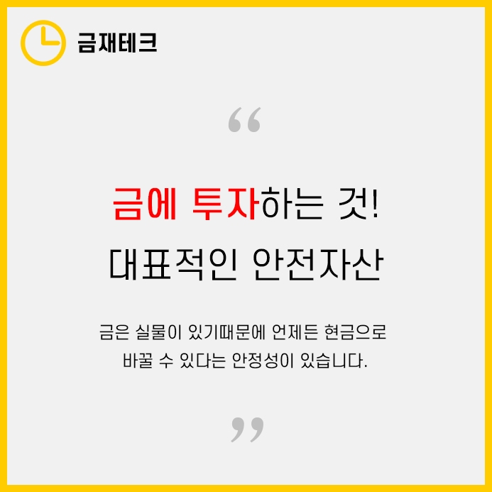 그래서 경기가 좋지 않을 것으로 전망될때 투자자들은 안전자산인 금을 일정부분 투자해놓기도 합니다.