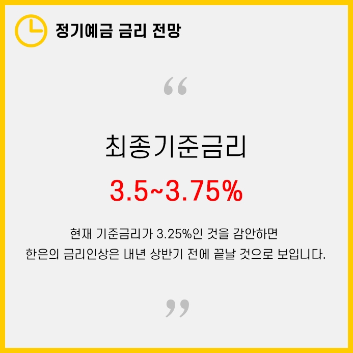 왜냐하면 한국은행이 지난 11월 금융통화위원회에서 최종금리는 3.5~3.75%가 될 것이라고 고지한 바가 있기 때문입니다.