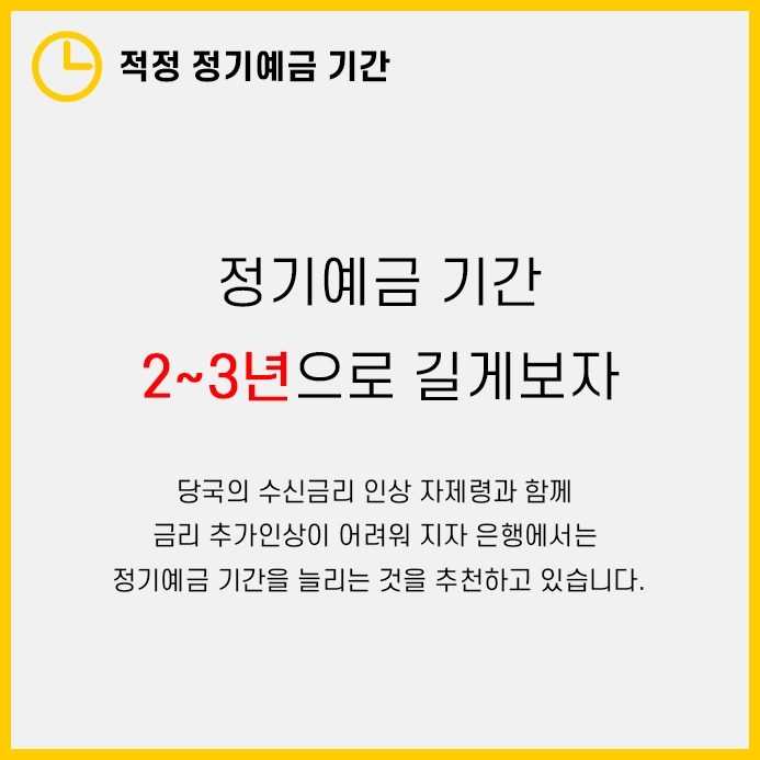 은행권의 전문가들은 정기예금 기간을 2~3년정도로 잡고 가는 것을 권장했습니다.