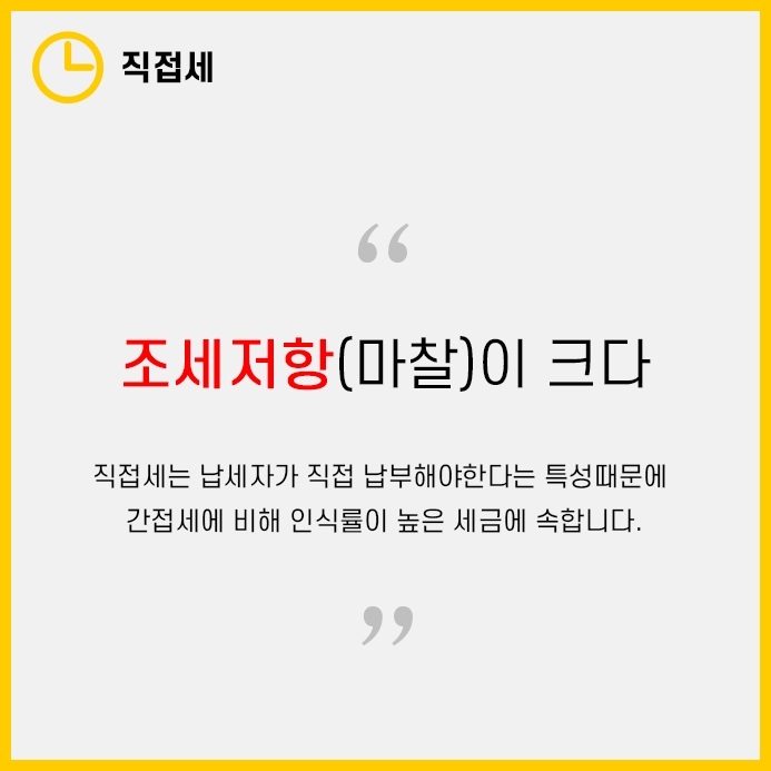 이러한 특징때문에 직접세는 조세저항이 크다고도 말합니다. 금융당국과 납세자와의 마찰이 생길 가능성이 크다는 뜻입니다.