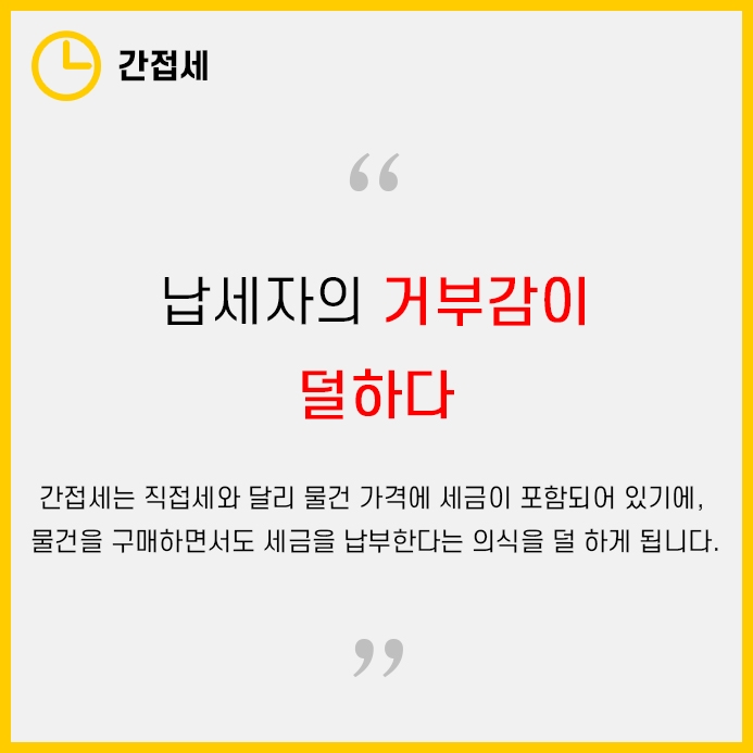 이러한 특성때문에 전문가들은 간접세의 비중이 적은 나라일수록 선진국이라는 평을 하고 있습니다.