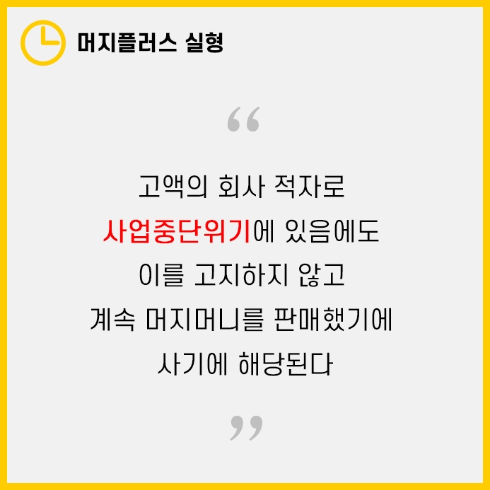 이러한 모지포인트 사태는 고액의 회사적자로 사업중단 위기가 있음에도 이를 소비자에게 고지하지 않고 상품을 계속 판매했다는 점에서 문제가 됩니다.
