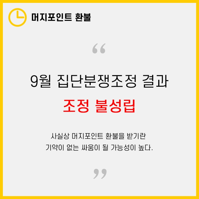 안타깝게도 올해 9월에 5467명의 피해소비자가 참여한 집단분쟁조정은 조정불성립으로 결과가 났습니다.