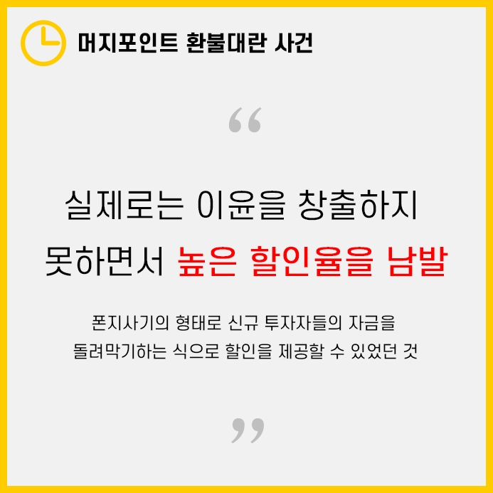 문제는 머지포인트 측에서 실제로는 현금 지급 능력이 없으면서 할인율을 남발한 데에서 시작하게 되었습니다.