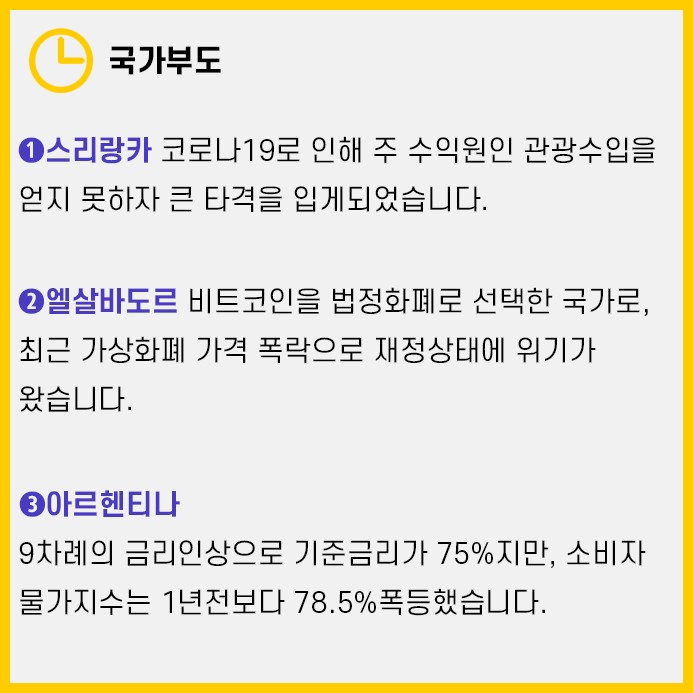 그중에서 대표적인 국가부도 위험이 있는 국가는 3곳으로 스리랑카, 엘살바도르, 아르헨티나가 있습니다.