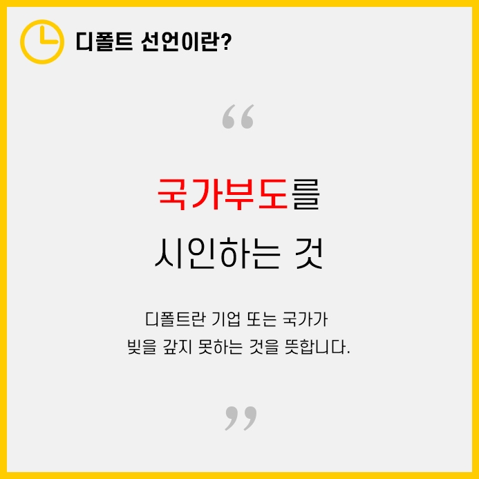 즉, 디폴트 선언은 국가부도와 동일한 뜻을 가지고 있습니다.