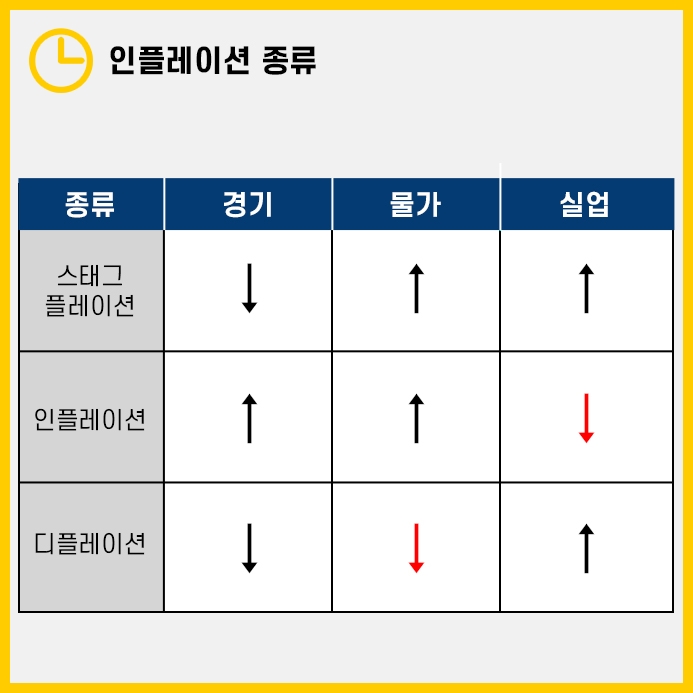 인플레이션은 경기, 물가, 실업의 상관관계에 따라 크게 3가지로 나뉩니다.