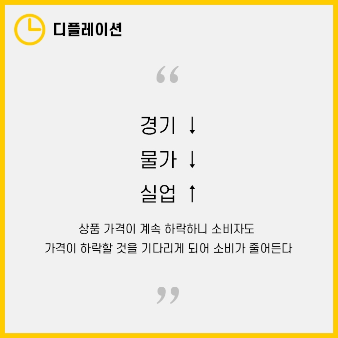 소비자는 물건의 값이 계속 떨어질 것이라 기대해 더 낮은 가격에 구매하기 위해 소비심리가 위축됩니다.