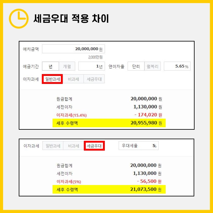 같은 금리라 하더라도 세금우대 적용 여부에 따라 수령액이 크게 달라집니다.