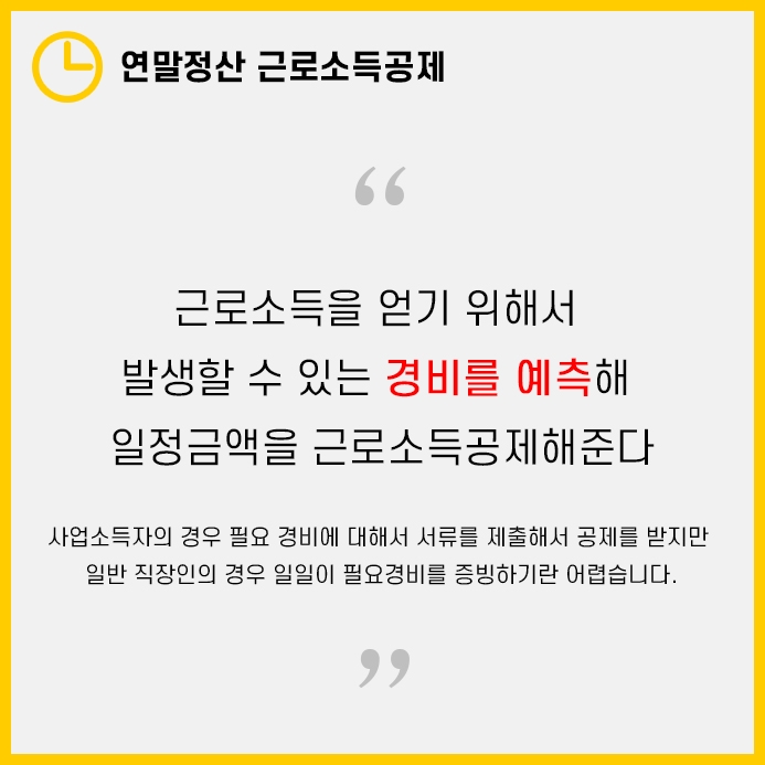 또한 국세청에서도 수많은 직장인들의 서류를 받아 경비를 공제해주는 것은 인력낭비라고 할 수 있겠습니다.