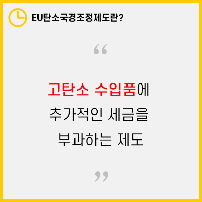 EU탄소국경조정제도란 고탄소 수입품에 대해 추가 세금을 붙이는 제도입니다.