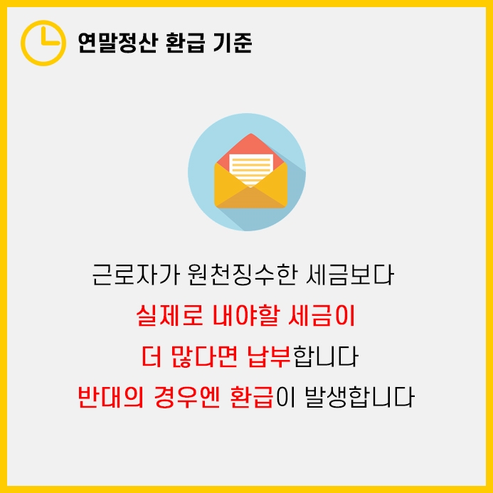 근로자가 공제를 많이 받아 원천징수한 것에서 오히려 세금을 돌려받아야 된다면 환급 대상이 됩니다.
