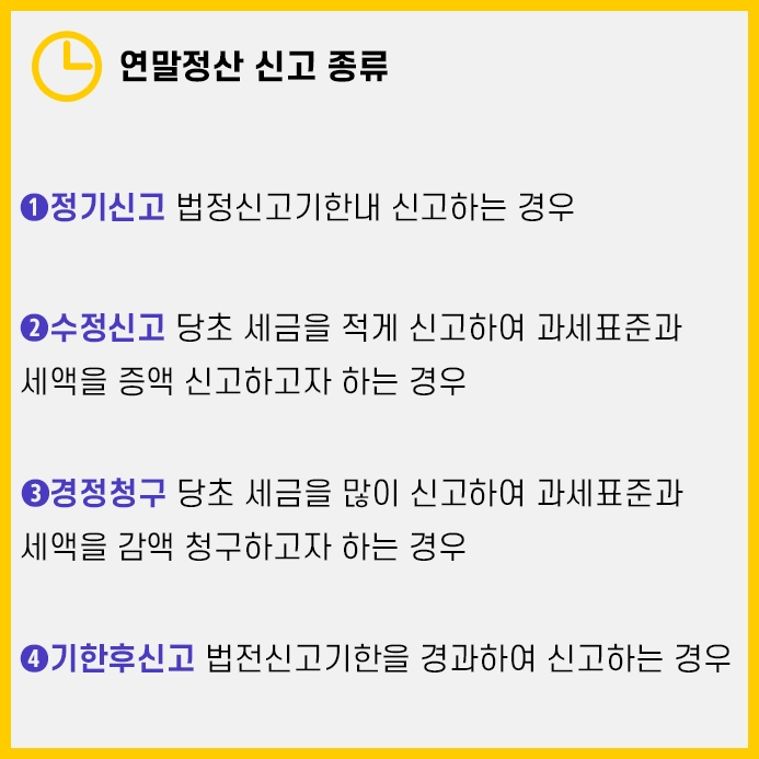 연말정산 수정신고, 경정청구, 기한후신고 차이