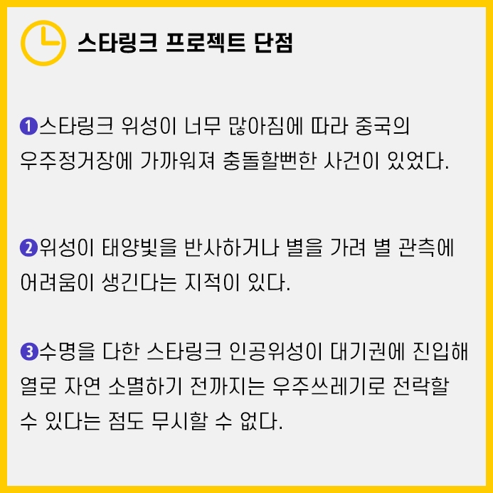 이렇게 완벽해보이는 스타링크 프로젝트에도 단점이 3가지 있습니다.