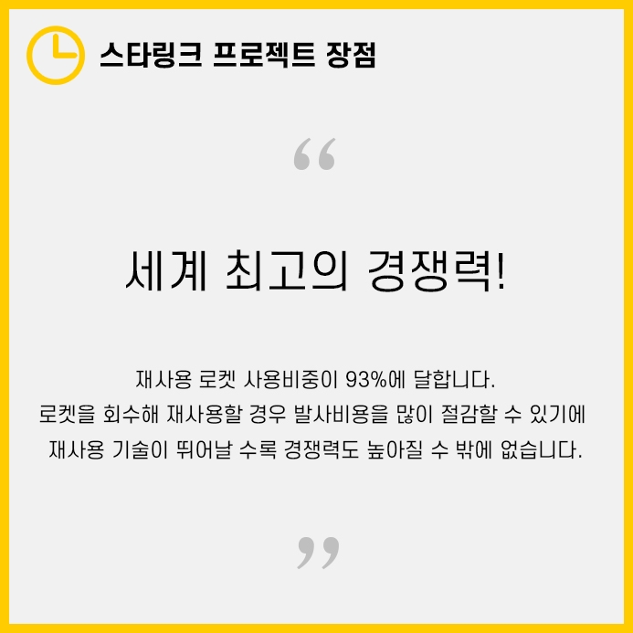 이처럼 로켓을 회수하고 재사용하는 비율이 93%에 달해, 발사비용을 많이 절감할 수 있었습니다.