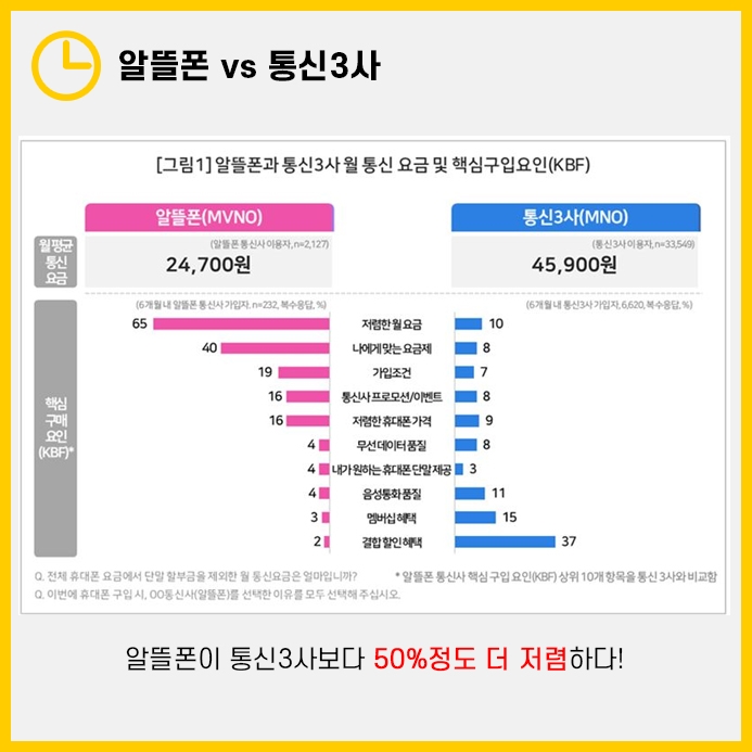 그래서 알뜰폰의 가격은 저렴하지만 통화품질이나 데이터속도도 기존3사와 동일합니다.