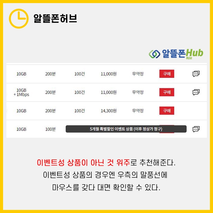 저같은 경우엔 이벤트 상품은 일정기간이 지나면 비용이 비싸지기때문에 또다시 갈아타야하는 번거로움이 있어 알뜰폰허브가 편리했습니다.