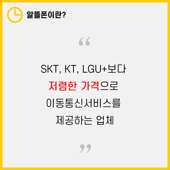 알뜰폰은 통신3사인 SKT, KT, LGU+보다 저렴하게 이동통신서비스를 이용할 수 있는 업체를 의미합니다.