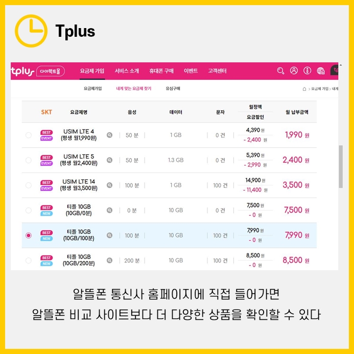 하지만 알뜰폰 허브의 경우 상품 추천군이 이벤트 상품이 아닌 것들이 많았습니다.