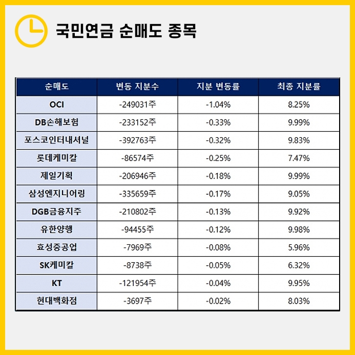 그럼 반대로 국민연금 투자종목 중 순매도 종목도 함께 알아보도록 하겠습니다.