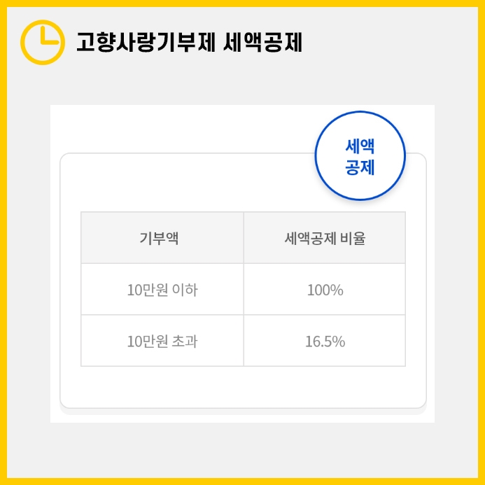 10만원 이하의 기부액은 고향사랑기부제 세액공제 비율 100%로 전액을 돌려받습니다.