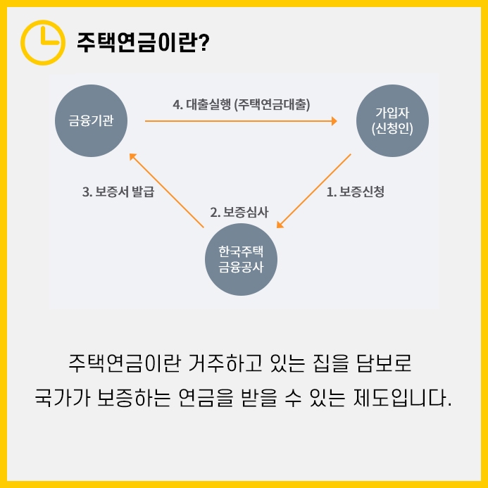 주택연금이란 신청인이 거주하고 있는 주택을 담보로 국가가 보증해 연금을 받을 수 있는 제도입니다.