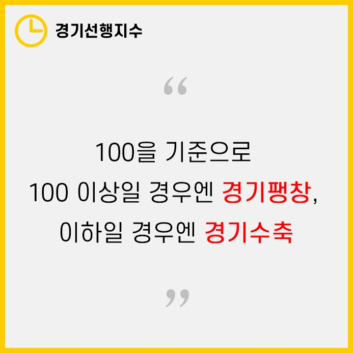 선행지수는 100을 기준으로 100이상이 될 때는 경기팽창, 100이하일 때는 경기수축으로 판단합니다.