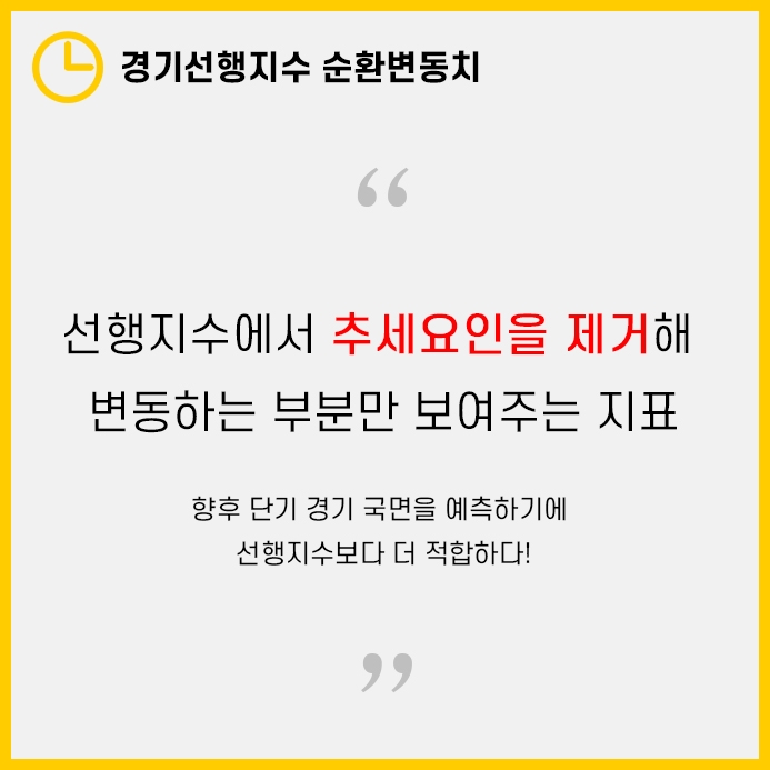 경기선행지수 순환변동치란 선행지수에서 추세요인을 제거해 변동하는 부분만 보여주는 지표로 단기 경기 국면을 선행지수보다 더 정확하게 알 수 있습니다.
