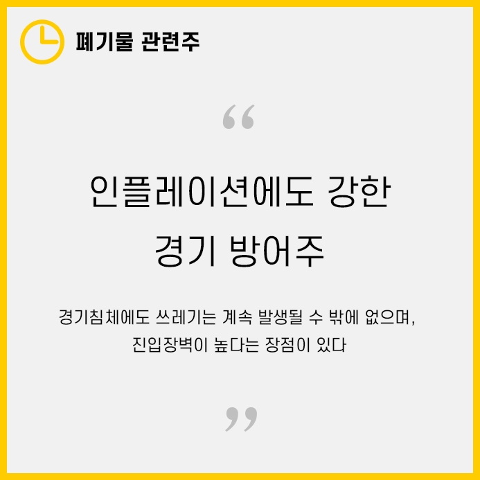 폐기물 관련주가 매력적인 이유로는 물가상승에도 비교적 안정적으로 수익이 난다는 점도 있습니다.