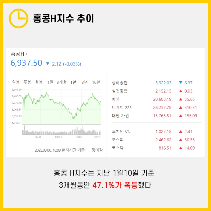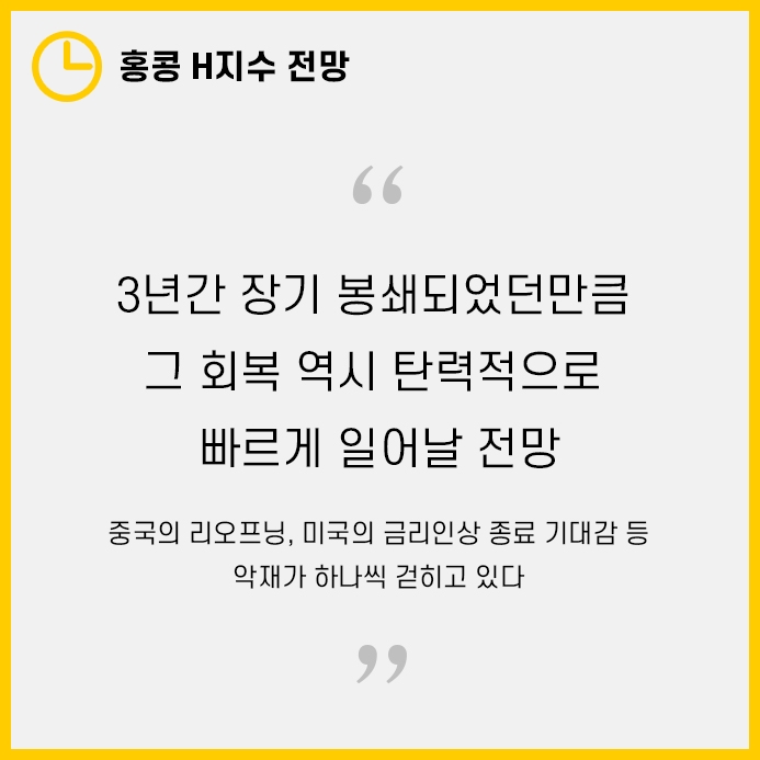 오늘은 홍콩 H지수 전망, 중국 경제 전망까지도 살펴보도록 하겠습니다.