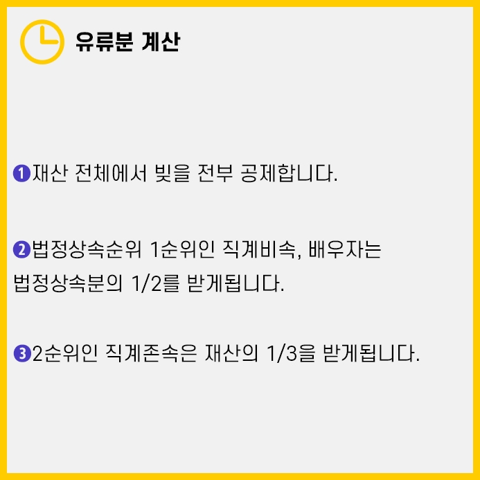 그 다음엔 법정상속순위에 따라 잔액을 나눕니다.