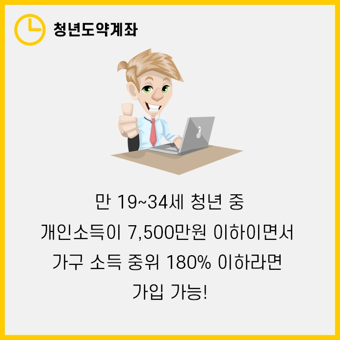 아직까지 상품의 자세한 가입요건은 안내된 바는 없지만, 유사한 청년 목돈형 상품인 '청년희망적금'을 기준으로 가입가능 유형을 알아보도록 하겠습니다.