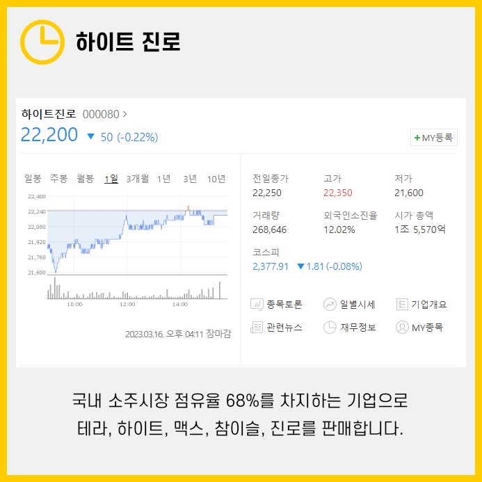 하이트 진로 주가·사업