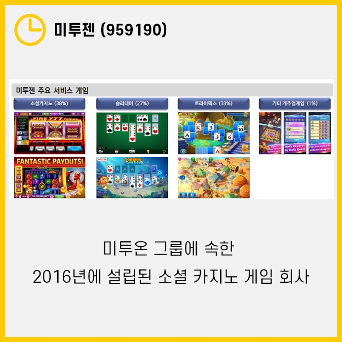 미투젠은 미투온의 자회사로 2016년에 설립된 소셜 카지노 게임 회사입니다.