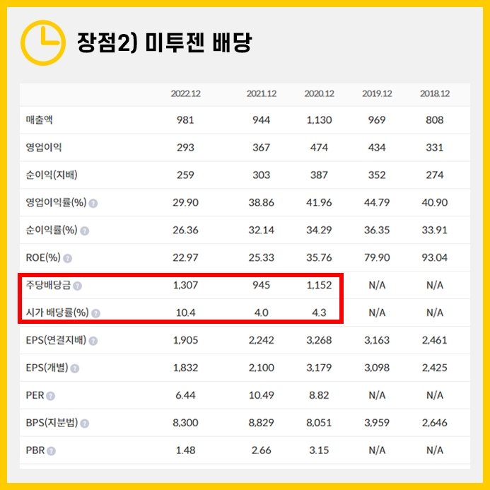장점2) 미투젠 배당
