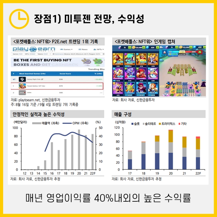 또한 작년에 출시한 <포켓배틀스:NFT워>가 P2E.net 트렌딩 1위를 기록해 게임업계에서도 긍정적인 평을 받기도 했습니다.