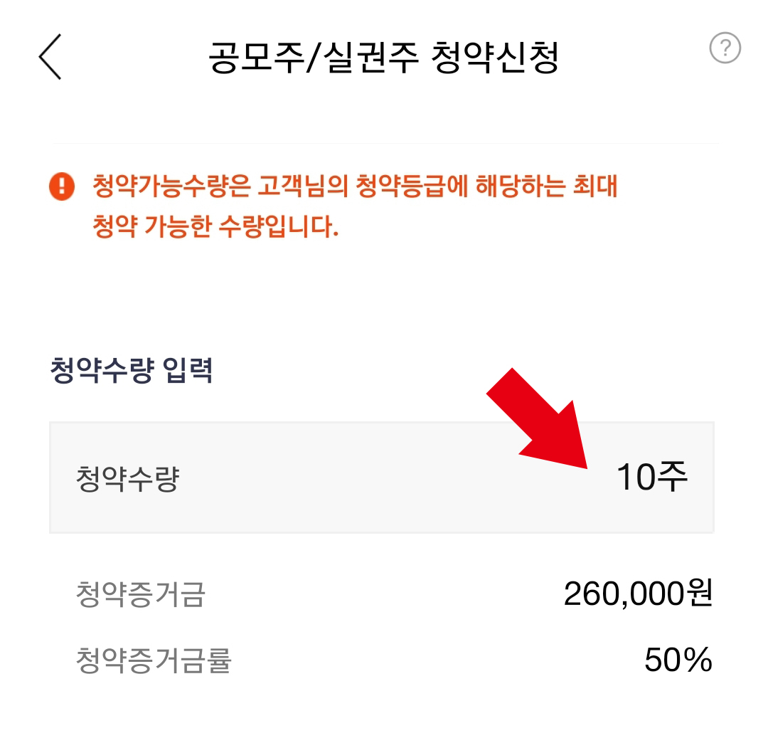 최소 청약 수량은 10주에요!!!