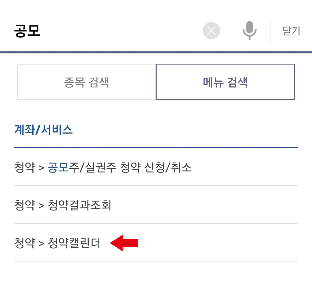 [청약>청약캘린더]를 선택해주세요!