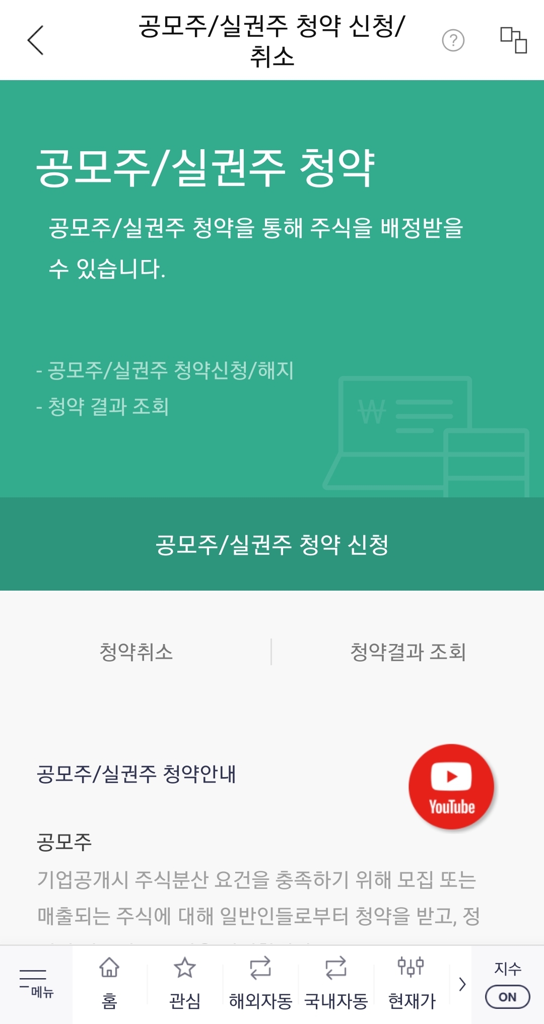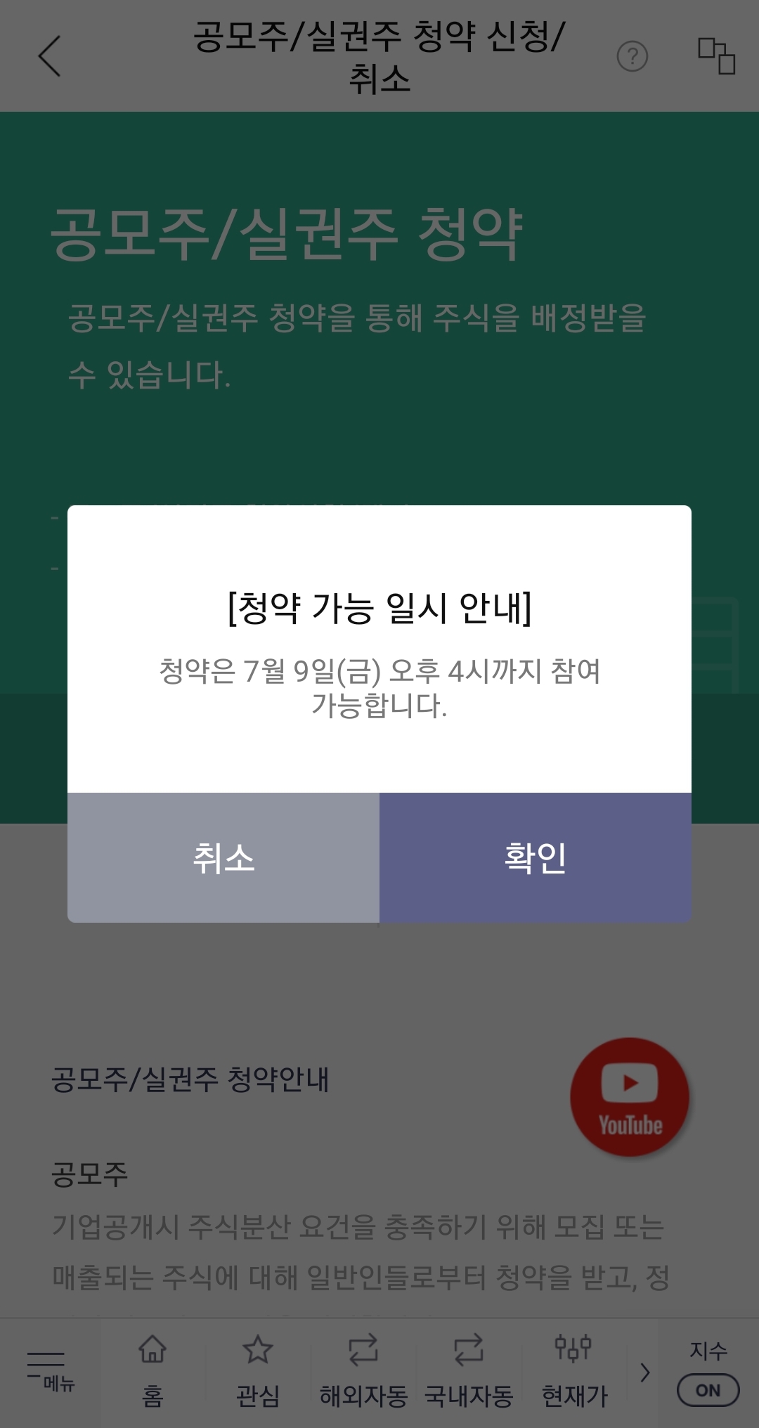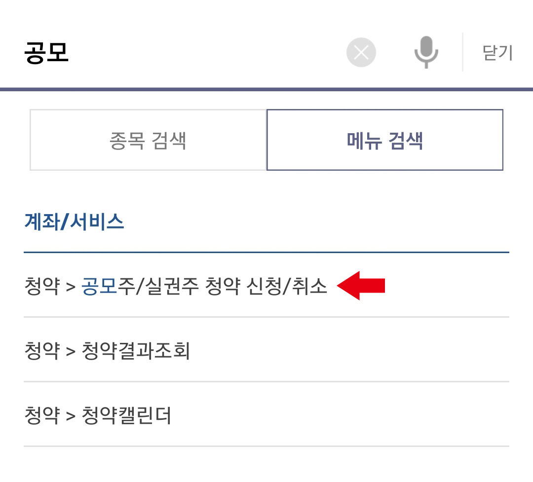 [청약>공모주/실권주 청약 신청/취소]에서