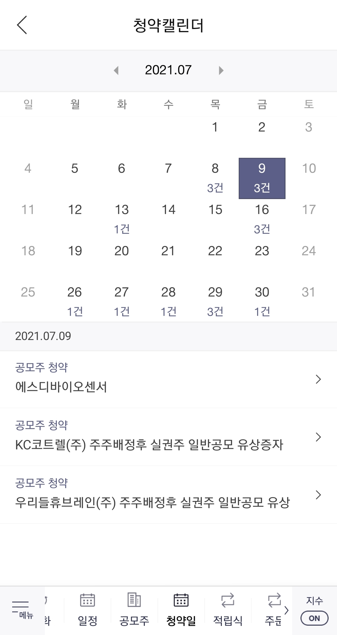공모주 일정을 확인할 수 있어요.