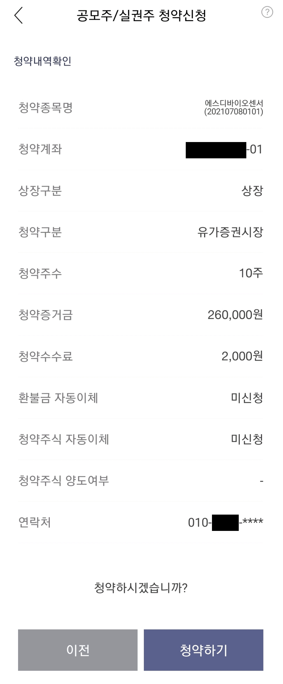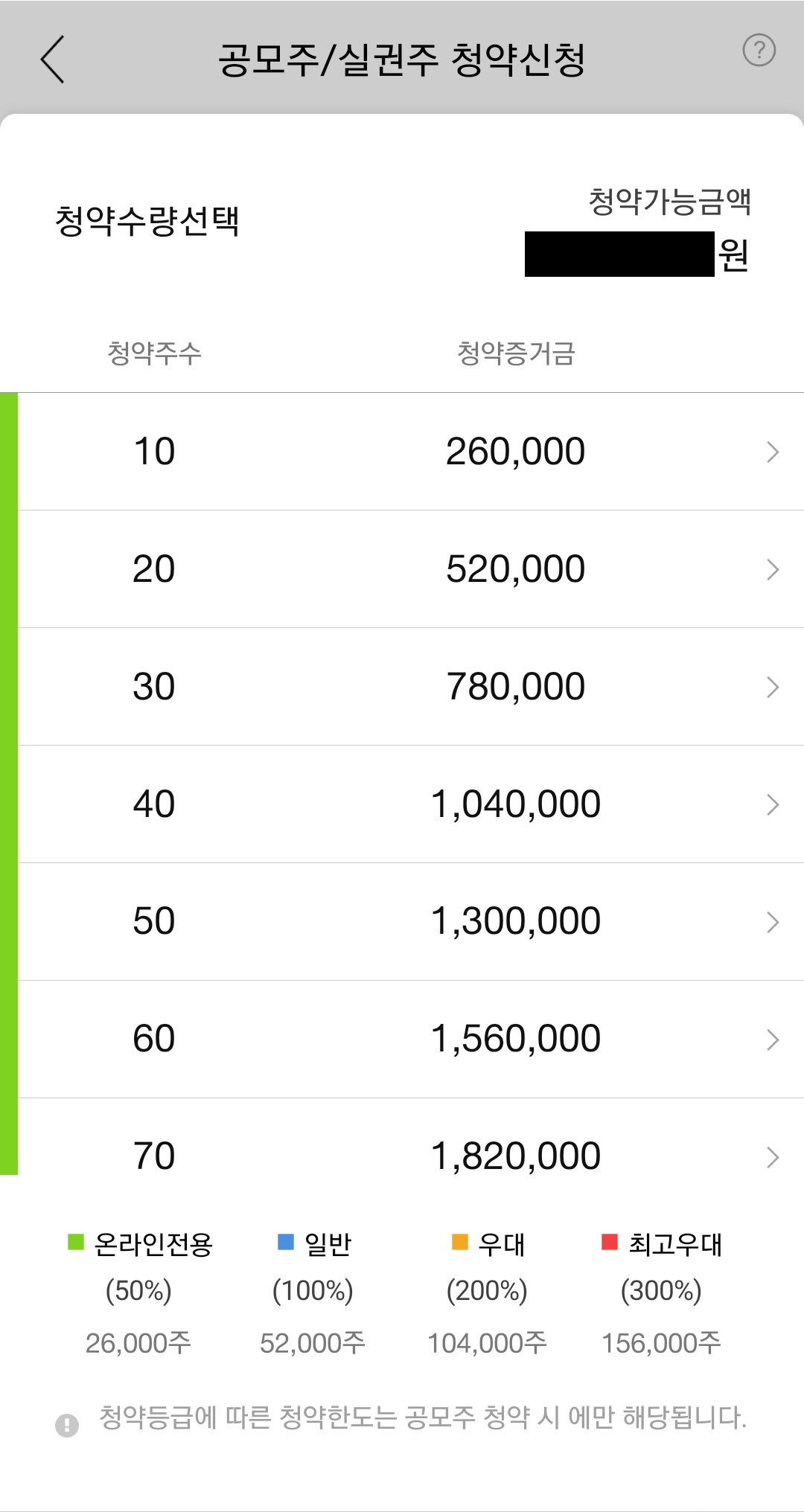 = 청약증거금이 260,000원이에요.