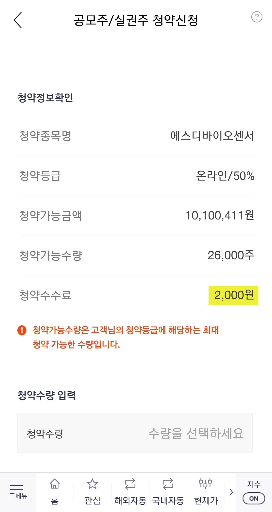 청약 수량을 선택해주세요!