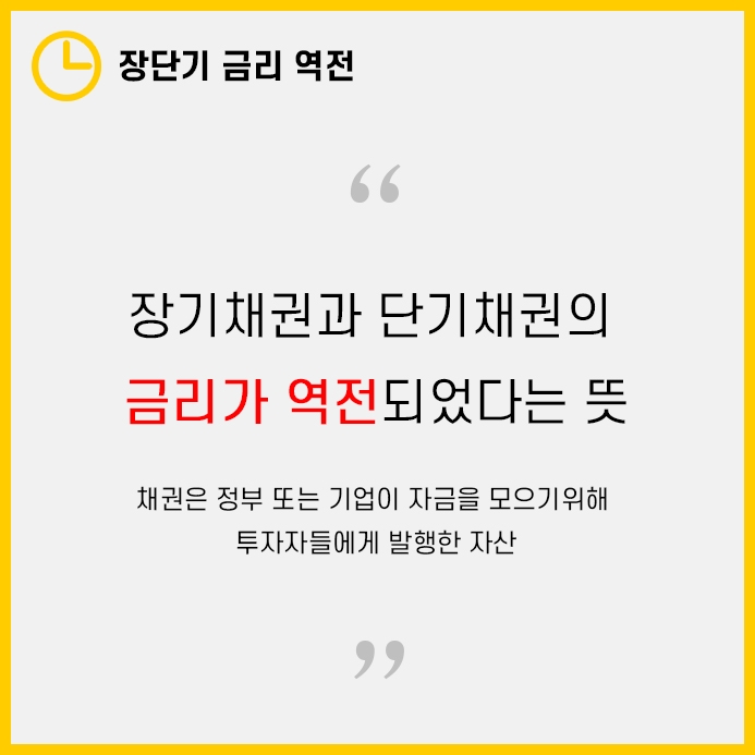 장단기 금리 역전은 장기채권과 단기채권의 금리가 역전됨을 의미합니다.