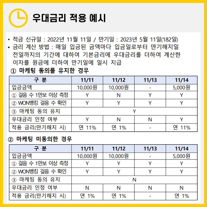 즉, 마케팅 동의를 하지 않은 날에는 우대금리 적용을 받지 않습니다.
