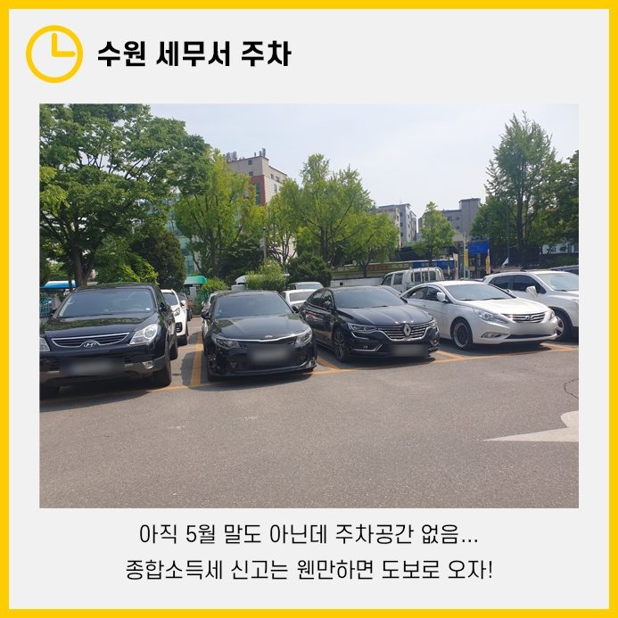 이처럼 종합소득세 신고기간에는 주차장이 혼잡할 수 있어 가급적 도보로 방문하는 것이 낫겠습니다.