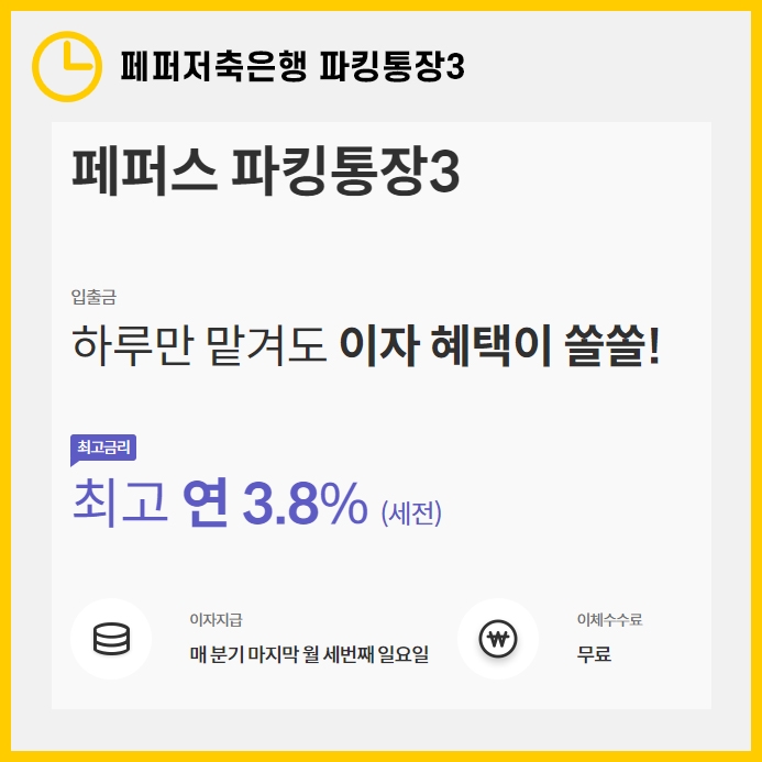 페퍼저축은행 파킹통장3 고금리 예금 추천 연 3.8%